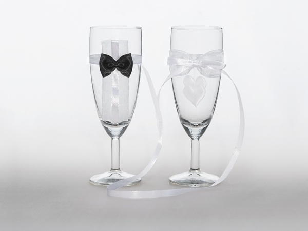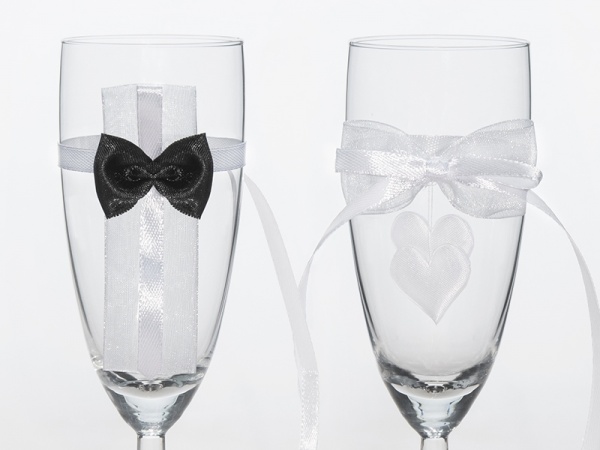 Svatební skleničky pro novomanžele s černým motýlkem a bílou mašličkou.