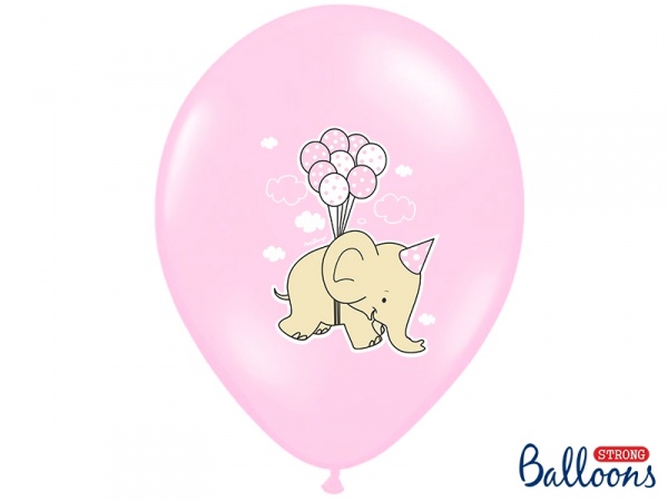 Růžový pastelový balónek - slon a puntíky - 50 ks