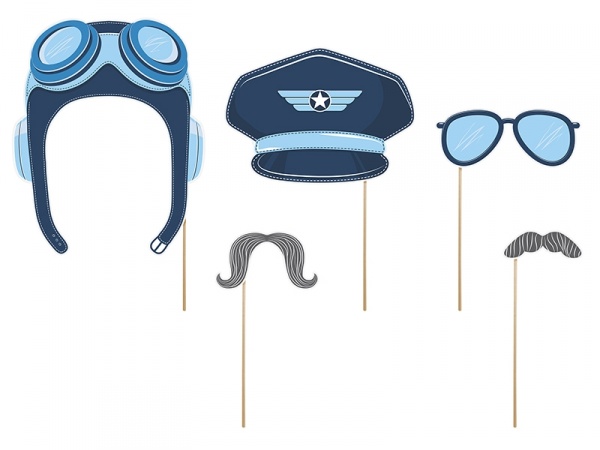 Balení 5 kusů špejlí s leteckými čepicemi, brýlemi a knírky na rozlučky se svobodou, svatební focení i jako vtipné zpestření jakékoliv párty.