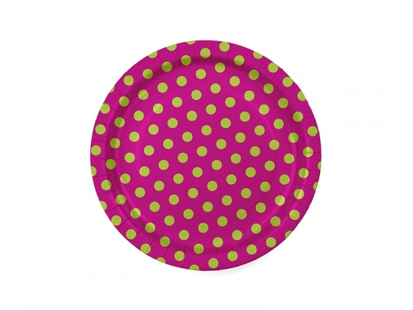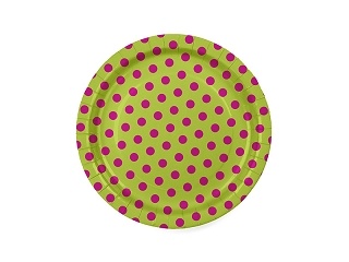 Barevné papírové talířky s puntíky. Různé barevné kombinace.