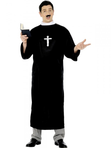 Mají Vás za zlobivého kluka? Překvapte je s dlouhým černým kostýmem kněze s bílým límcem!